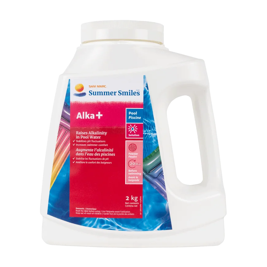 Summer Smiles Alka+ is an essential water balancer that increases total alkalinity, preventing rapid pH fluctuations that can affect water quality and sanitizer efficiency. By keeping pH levels steady, Alka+ helps protect pool surfaces and equipment while providing a more comfortable swimming environment. It also contributes to raising the pH level when needed, making it a key product for maintaining optimal water chemistry in all types of pools.